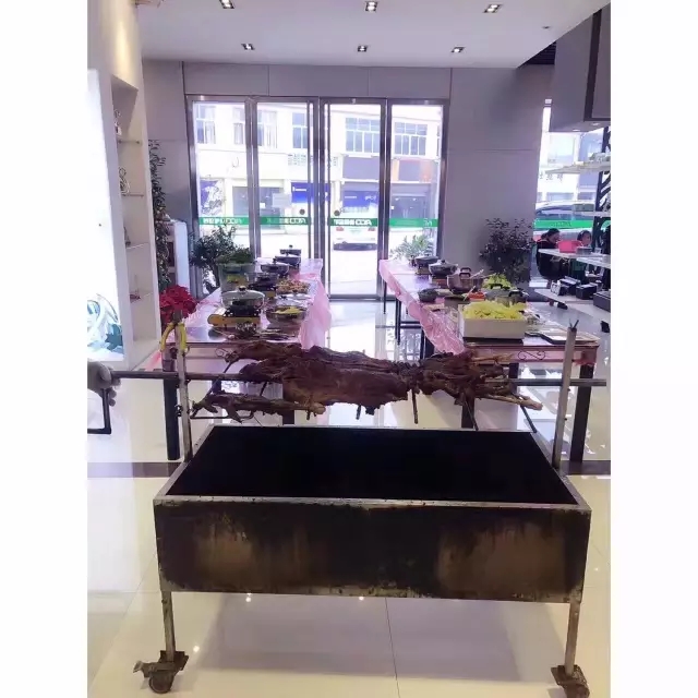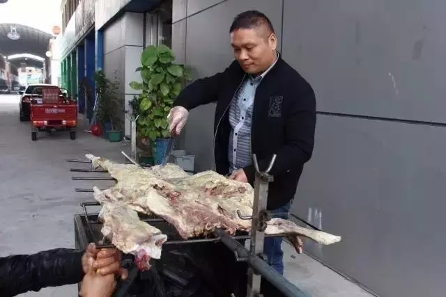 梁董說:“這烤全羊肉厚,多劃刀子,熟得快啊!”