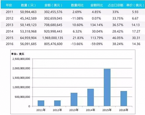 ? 2011-2016年出口美國可移動燈具情況