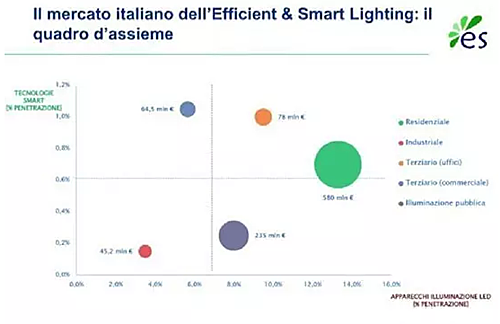 ? 近期,在意大利米蘭理工大學研究人員的一份“高效&智能照明報告”中透露,在2020年前,意大利的LED及智能照明市場有望以兩位數(shù)的速度增長。這意味著在2020年,除了價值1.4億歐元的智能照明市場,意大利的LED市場必定會從2015年的9億歐元增長并超過12億歐元。據(jù)了解,米蘭理工大學的研究人員聯(lián)合貿(mào)易協(xié)會共同研究在住宅、工業(yè)、公共照明的LED傳播及智能照明方案。研究表明,盡管LED技術的未來發(fā)展極具潛力,但當前的LED技術的滲透力仍較低。報告還指出,在2020年前,LED及智能控制系統(tǒng)將從原來的8%增長至42%。