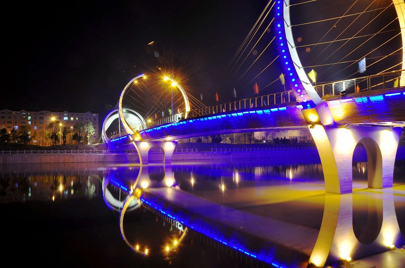 想欣賞小清河的夜景,除了五柳島、板橋廣場等幾個重要的夜景亮化節點外,也可以沿途欣賞幾座橋梁的夜景裝飾,各橋梁的裝飾與整體園林景觀融為一體,整個橋梁裝飾與橋梁燈光亮化有效結合,形成一橋一景。小清河亮化 橋梁夜景 橋梁亮化 河岸亮化 小清河亮化工程